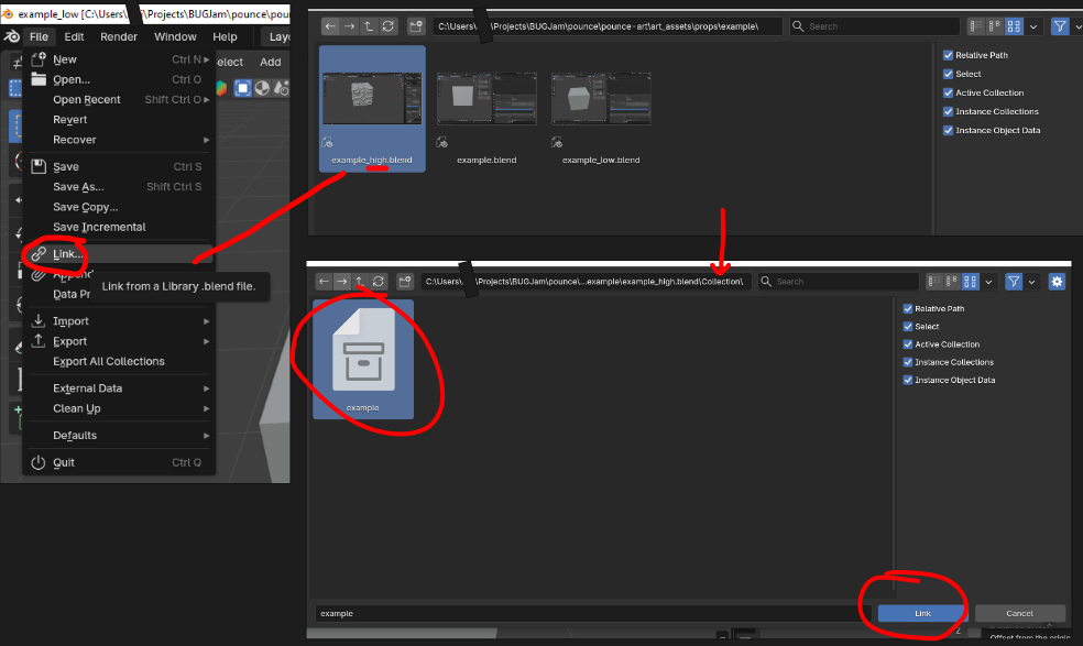 All changes to the .blend file need to be checked into the pounce-art repository. And the newly exported mesh / collision update need to be checked into the pounce-game repository.
