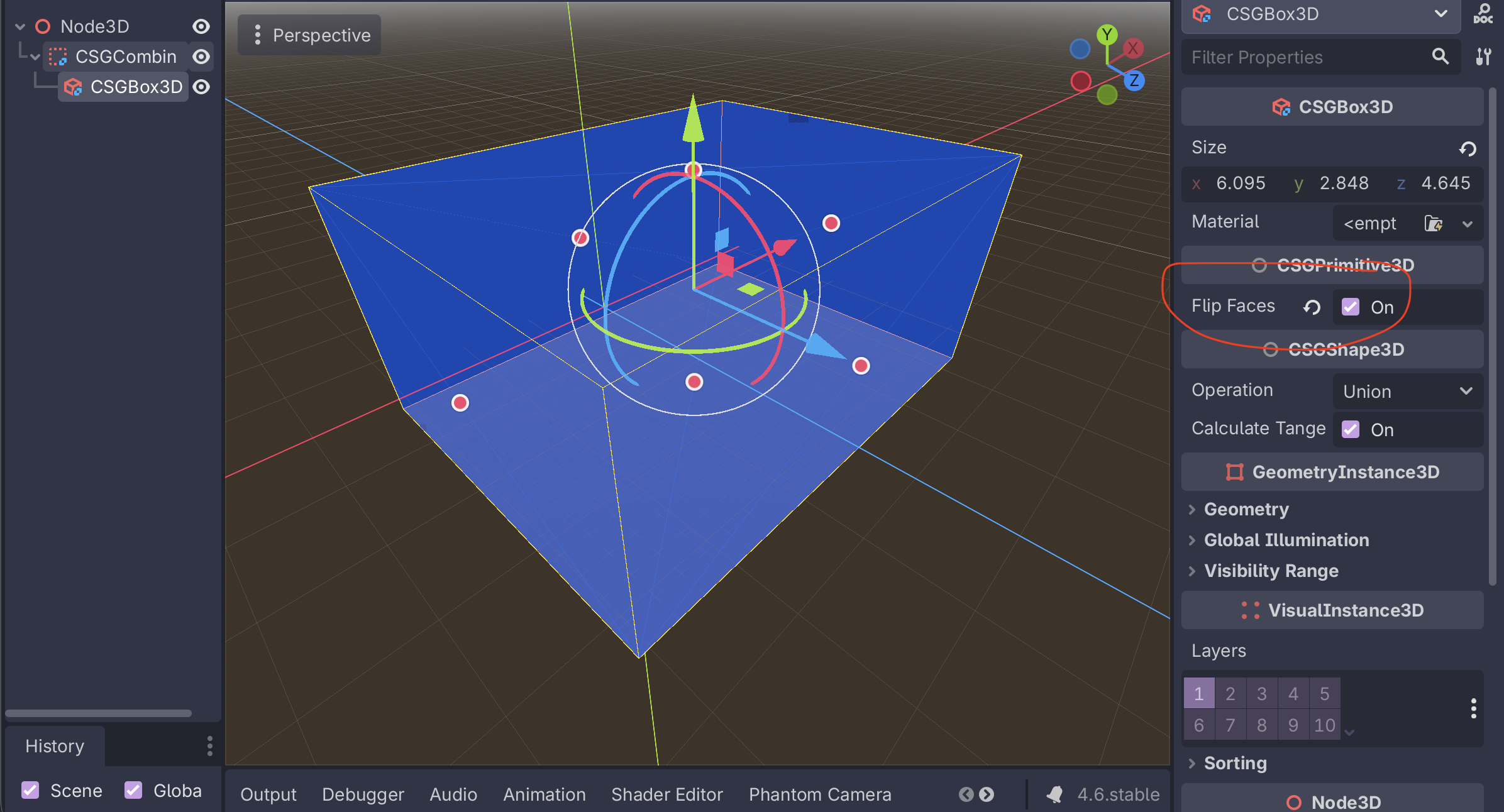 Back in the scene with the CSG nodes, select the root CSGCombiner3D and select CSG → Bake Collision Shape