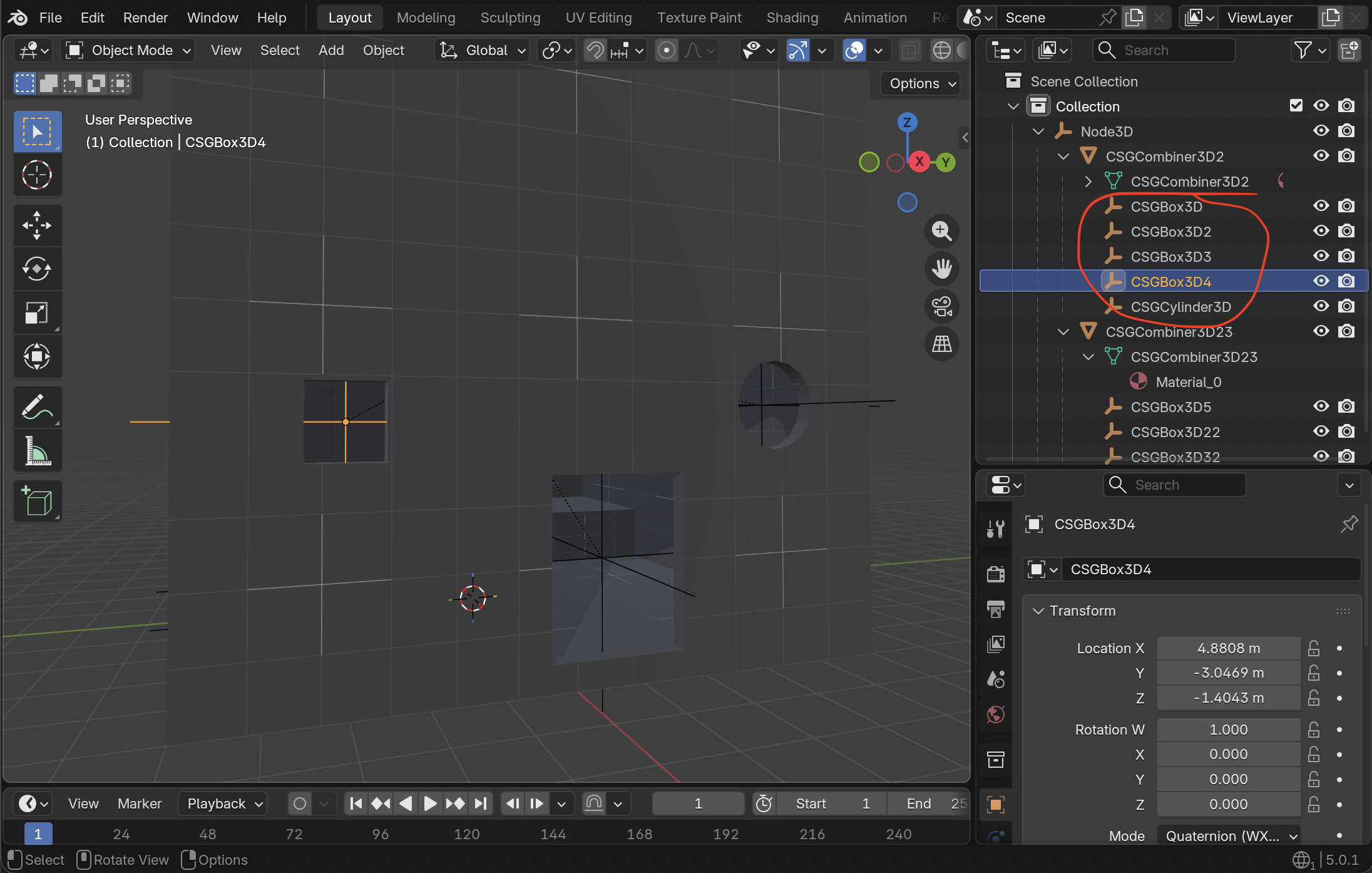 Note that for each CSG node that you added, there will be an "Empty" object. You can delete these.