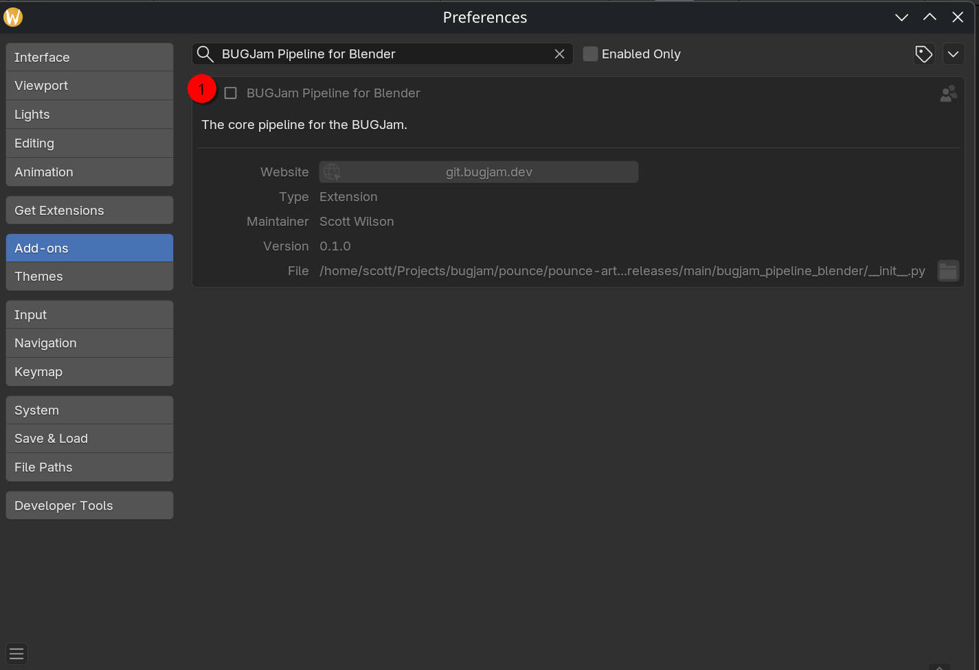 pounce-art/pipeline/blender/releases/mainfolder.- Go to preferences