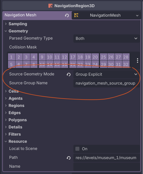 Meshes that should be part of the navigation mesh must be added to the navigation_mesh_source_group group. This is a global group that shouldÂ