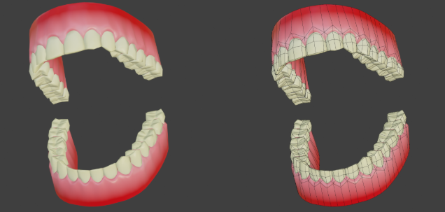 We are going to be using a high - low polygon workflow, which means you can go pretty high when working on the details of your model! If your computer can handle it- go for it! Please see Xury's punk character series to understand this workflow in depth. Included example is this pair of teeth by Xury- see the difference in the original sculpt vs final game model
