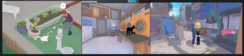 When translating elements to the game style, proportions will be exaggerated for a playful effect. See the example above^ whenever there are areas that can be exaggerated without losing their silhouette, they should be exaggerated. Below are examples of how similar games have pulled off this scale exaggeration- the goose and the cat would be much smaller, but the worlds don't feel "looming" or overly giant around them.