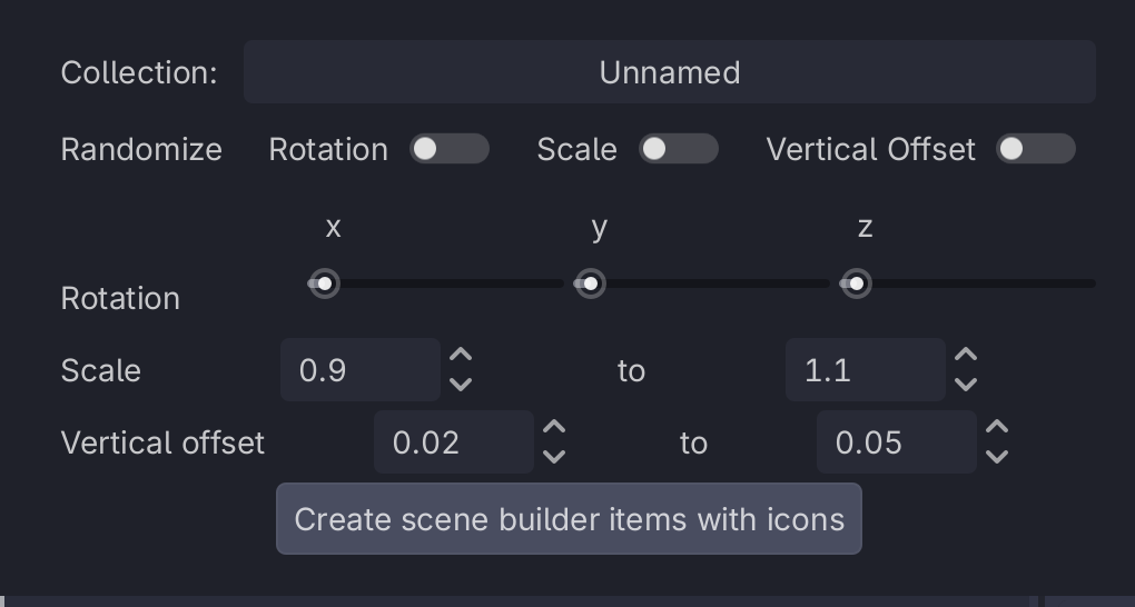- Click "Create scene builder items with icons"